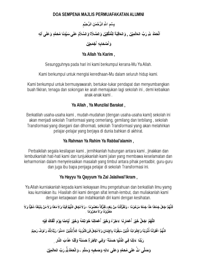 Doa Sempena Majlis Permuafakatan Alumni Pdf